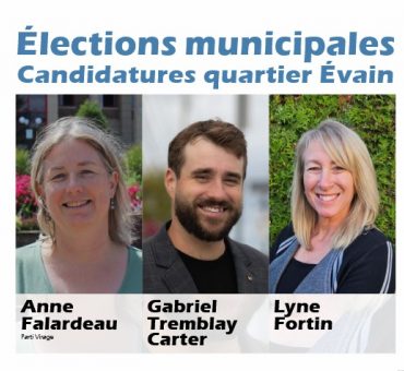 Dans le district Évain, trois candidat(e)s se présentent au poste de conseiller ou conseillère...